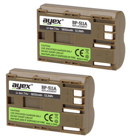 ayex Power Set mit 2x BP-511A Akku + 1x USB Dual Ladegerät für z.B. Canon 300D 50D 1D D60