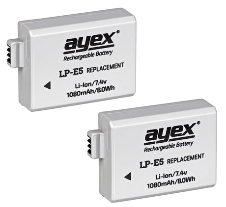 ayex Power Set mit 2x LP-E5 Akku für Canon + 1x USB Dual Ladegerät zB Canon EOS 450D 500D 1000D