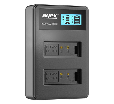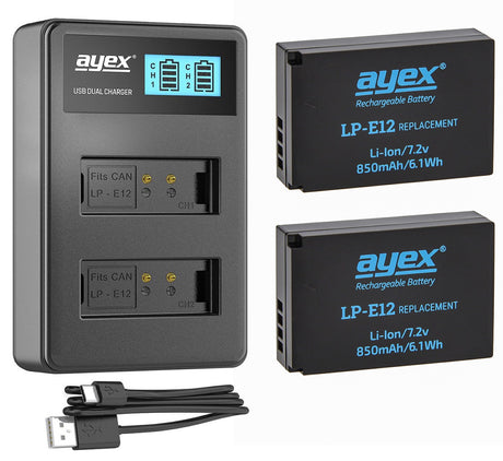 ayex Power Set mit 2x LP-E12 Akku für Canon + 1x USB Dual Ladegerät zB EOS M M200