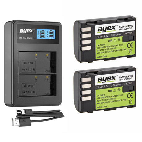 ayex Power Set mit 2x DMW-BLF19E Akku für Panasonic + 1x USB Dual Ladegerät