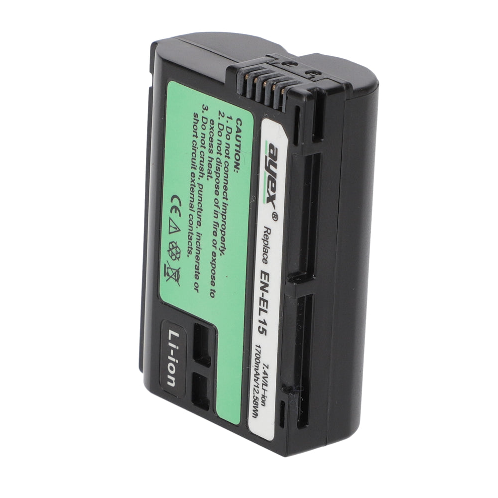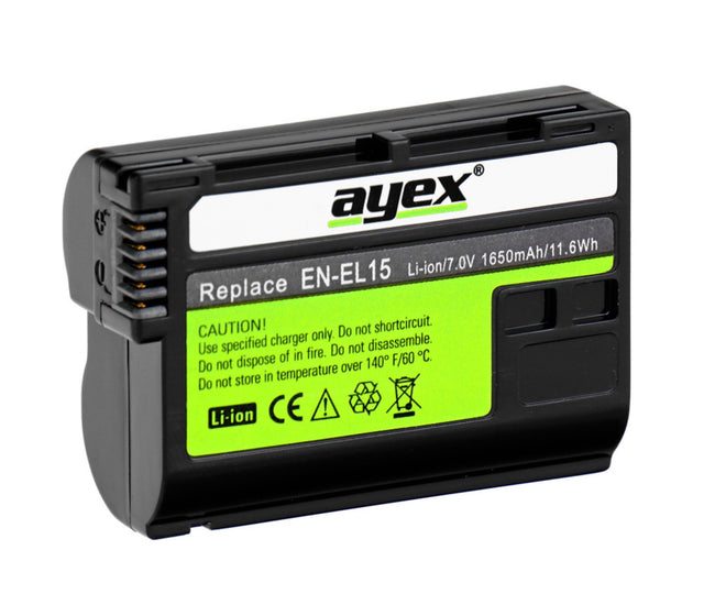 Der ayex Akku wie EN-EL15 verfügt über umfassende Sicherheitsmerkmale wie Schutz vor Kurzschluss, Überladung und Überhitzung. Diese Funktionen sorgen für einen sicheren Betrieb und tragen zur Langlebigkeit Ihrer Kamera und des Akkus bei.