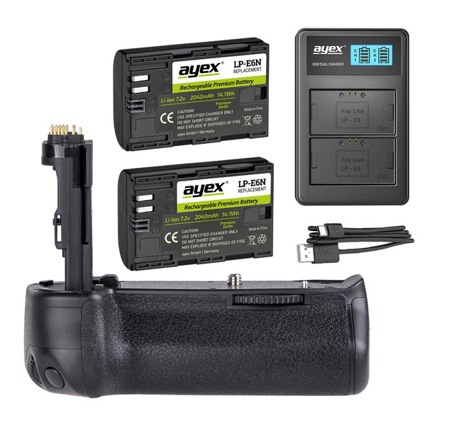 ayex Batteriegriff für Canon EOS 70D 80D 90D + 2x LP-E6N Akku + 1x USB Dual Ladegerät