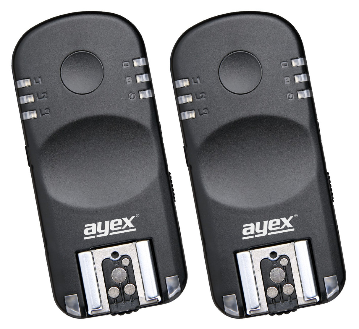 ayex Funk Blitzauslöser und Kamera-Fernauslöser für Canon EOS und Powershot, Blitz- & Kameraauslöser Set mit 2 Transceivern AX-BA1