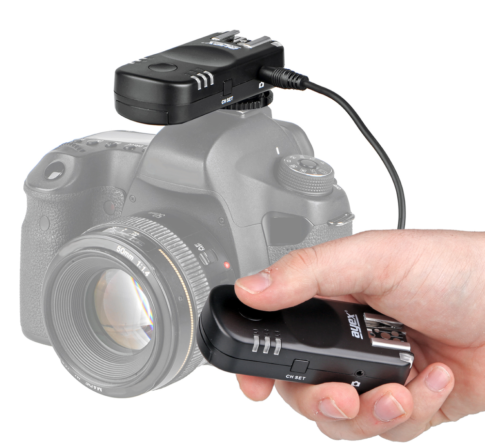 Zusätzlich zum Blitzauslösen können Sie mit dem AX-BA1 Ihre Canon EOS/Powershot Kamera fernauslösen, wahlweise per Kabel oder Funk.