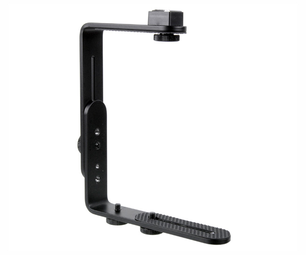Mithilfe dieser Blitzschiene lässt sich der Abstand zwischen externem Blitzgerät und Kameraobjektiv vergrößern. Unschöne Schatten, z. B. beim Einsatz von Gegenlichtblenden oder bei der Benutzung von Teleobjektiven, werden reduziert oder verschwinden ganz.