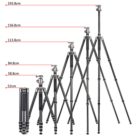 JUSINO Leichtes Karbon Tripod Monopod mit Kugelkopf bis 160cm 12kg FGS-30 TK-254C