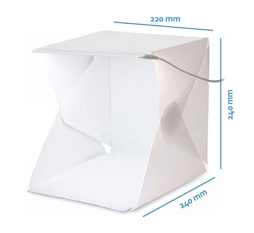 Mini-Fotowürfel Lichtzelt weiß mit LEDs 22 x 24 x 24cm