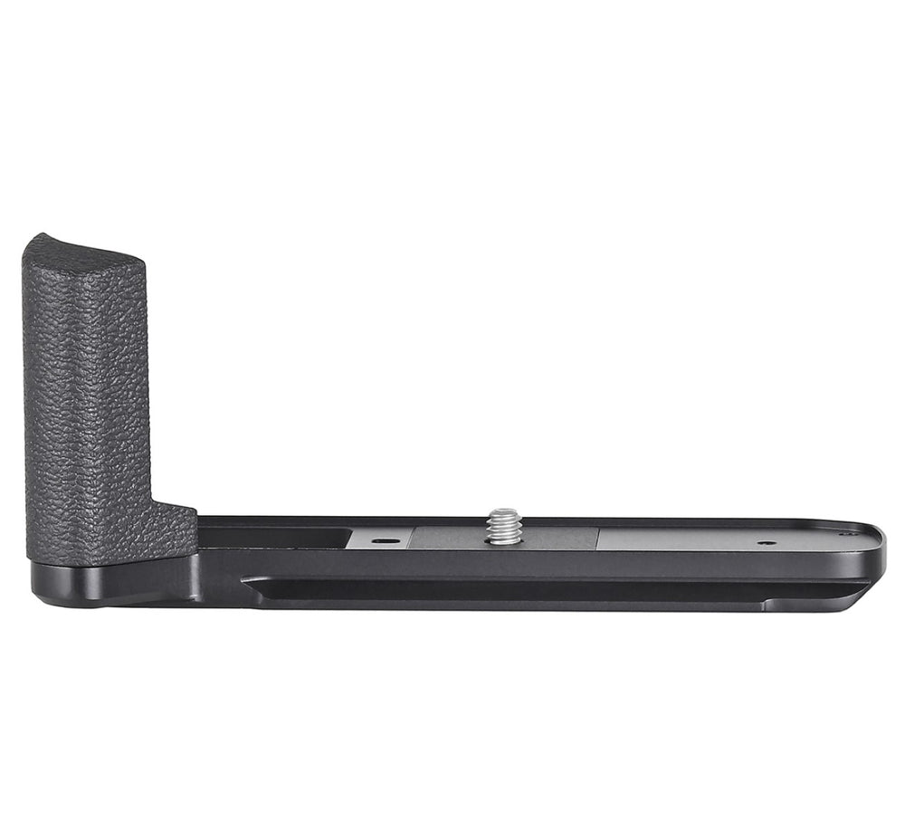 Das ergonomische Design harmoniert mit dem Fujifilm Kamera-Design, Das Material aus Aluminium-Legierung ist robust und langlebig. Der Handgriff hat ein Gewicht von nur 108 Gramm. Er ist kompatibel mit Standard Arca-Swiss-Systemen.