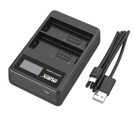 USB Dual Ladegerät für Fujifilm NP-W235 Akkus beleuchtetes Display Ladestandanzeige