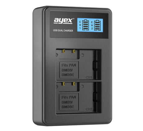 USB Dual Ladegerät für Panasonic DMW-BMB9 DMW-BMB9E Akkus beleuchtetes Display Ladestandanzeige