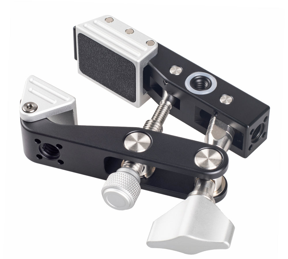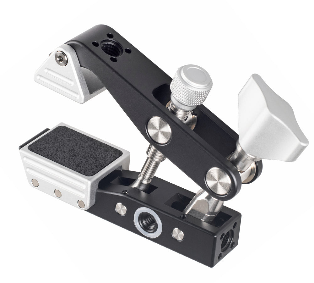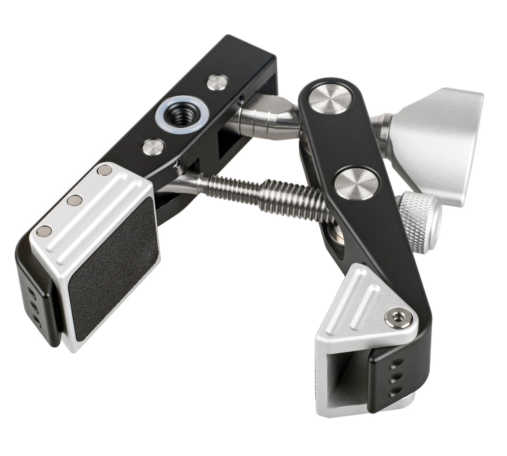 Dank der Hebelkonstruktion und ihrer sehr kräftigen, präzisen Stellschraube lässt sich die MC-80 praktisch an allen Gegenständen bis zu einer Dicke von 9,6 cm befestigen. Willkommene Trägerelemente für die FC-80 sind z.B. Kisten, verschiedene Tischplatten, Zaunelemente oder Äste. An der eingebauten ¼“-Stativschraube unserer stabilen aber nur 280 g leichten Multifunktionsklemme kann wahlweise eine Kamera direkt, ein Kugelkopf oder so manches andere Zubehör aufgeschraubt werden.