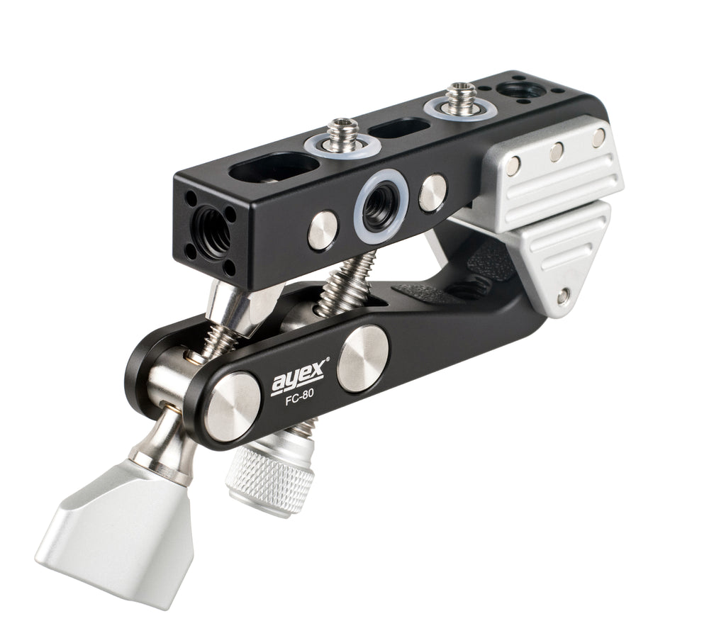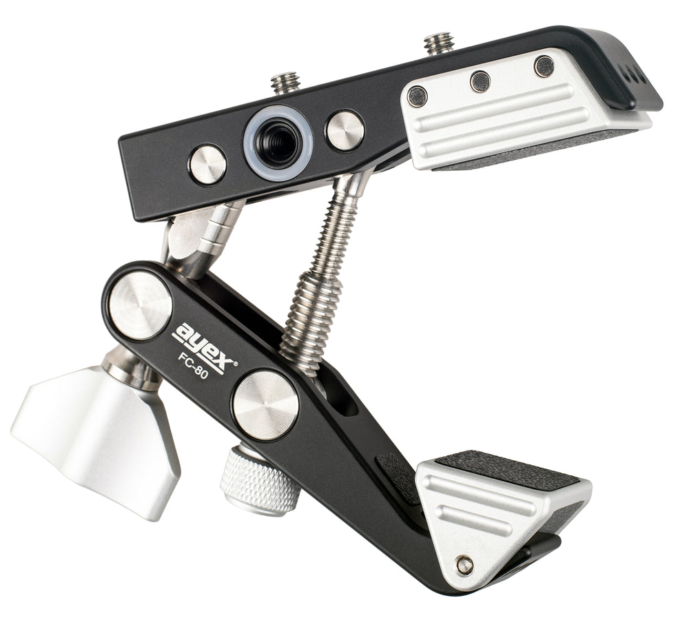 Mit einer maximalen Tragfähigkeit von 5 kg ist unsere ayex FC-80 Multifunktionsklemme besonders belastbar. Sie eignet sich damit bestens als Klemmstativ für gewichtige Kameras. Wo die Verwendung eines Dreibeinstativs nicht möglich ist, kann die FC-80 Multifunktionsklemme ihre Fähigkeiten ausspielen.