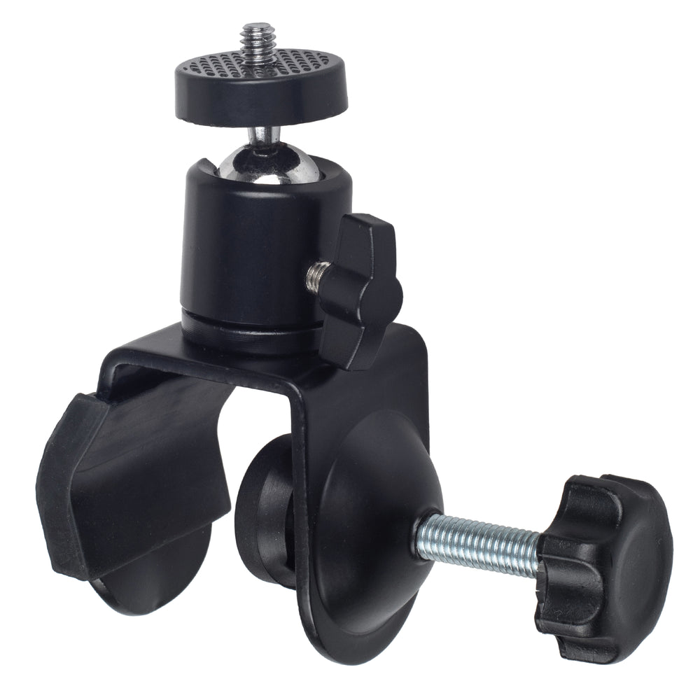 Stativklemme mit Kugelkopf & drehbaren 1/4 Zoll Mount bis 4 cm Rohrdurchmesser gummiert