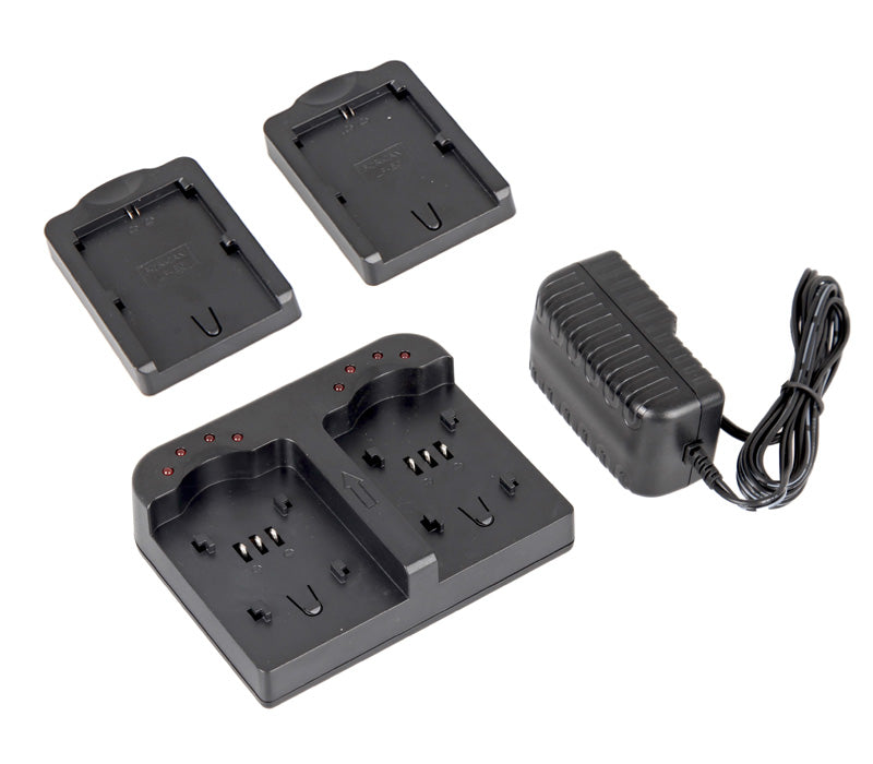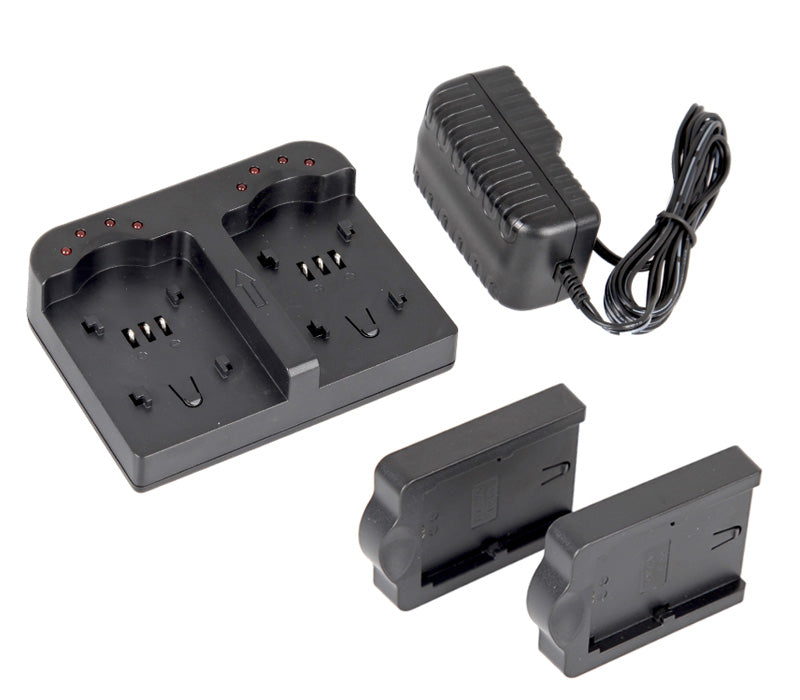 Mit diesem effizienten Doppel-Ladegerät lassen sich bis zu zwei Lithium-Ion-Akkus mit gleicher oder unterschiedlicher Kapazität gleichzeitig aufladen.