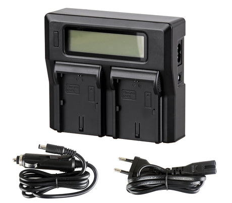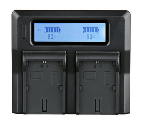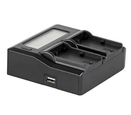 USB Dual Ladegerät für Sony NP-F550 NP-FM550H NP-FM50 Akkus beleuchtetes Display Ladestandanzeige