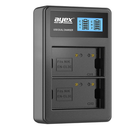 USB Dual Ladegerät für Nikon EN-EL3e Akkus beleuchtetes Display Ladestandanzeige