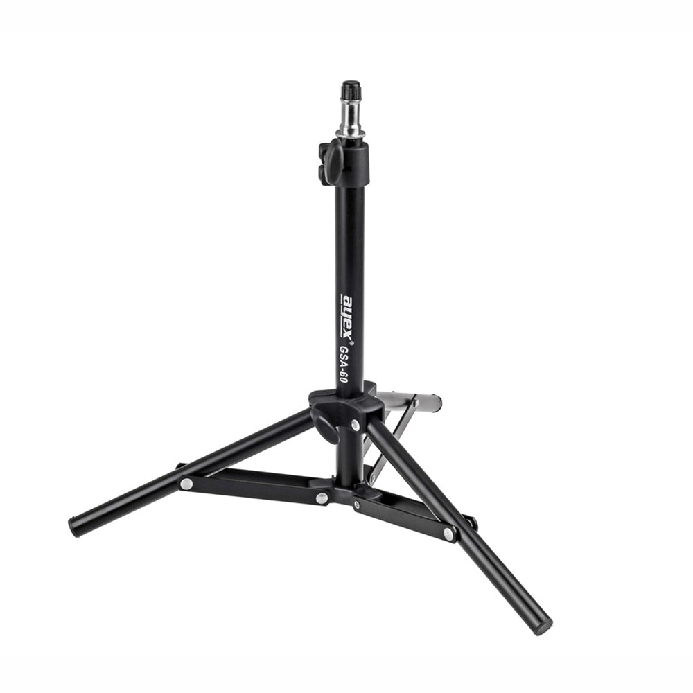 Dieses handliche leichte Lampenstativ lässt sich stufenlos verstellen und per Flügelschraube arretieren. Aufgrund seiner niedrigen Höhe ermöglicht es die Ausleuchtung Ihrer Aufnahmen von unten. Ebenso kann es als Tischstativ zum Einsatz kommen.
