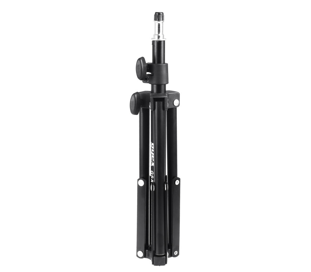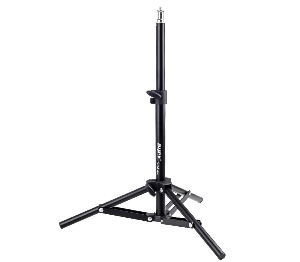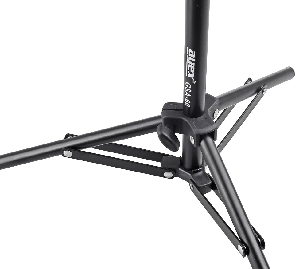Die Mittelspinne sorgt für stabilen Stand. Dank des geringen Packmaßes und des leichten Gewichts lässt sich das Lampenstativ bequem transportieren und sehr platzsparend aufbewahren.