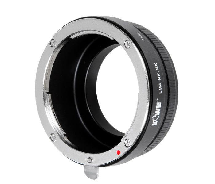 Dieser Adapter aus eloxiertem Aluminium mit verchromtem Messingring erlaubt die Anbringung von Nikon F Objektiven an Samsung NX Kameras. Er ist präzise gefertigt und sehr stabil, allerdings nicht für Balgengeräte, Diaduplikatoren etc. geeignet. Das Einrasten des Adapters ins Bajonett Ihrer Kamera garantiert optimalen Halt und Schutz vor Überdrehen des Adapters.
