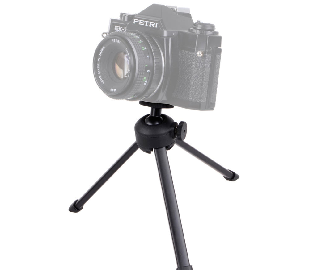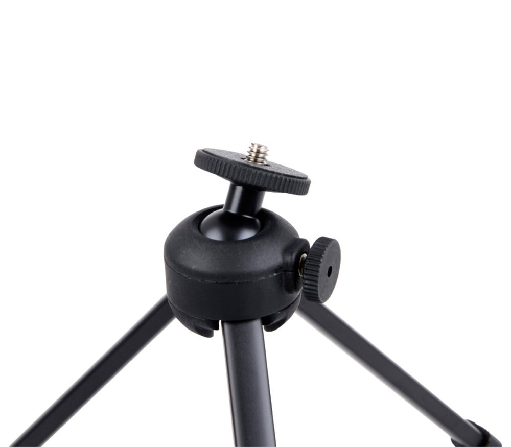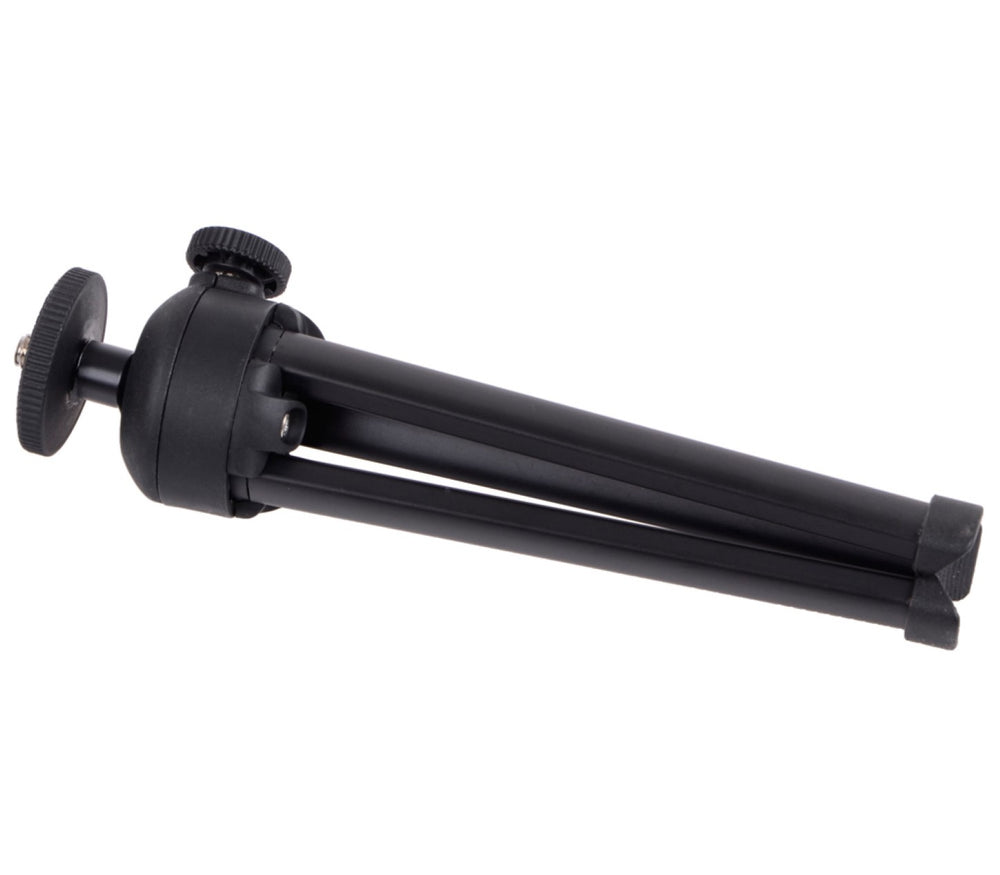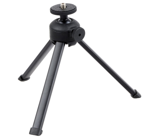 Mit diesem kleinen Helfer gelingen Ihnen verwacklungsfreie Aufnahmen. Das Dreibeinstativ verfügt über einen Kugelkopf, der sich mit einer seitlichen Schraube fixieren lässt. Kompaktkameras können direkt auf die 1/4 Zoll Schraube montiert werden und für Aufnahmen mit dem Smartphone lässt sich ein zusätzlicher Halter mit Standard-Stativgewinde aufschrauben.