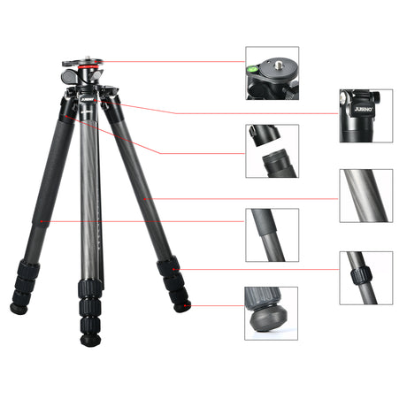 JUSINO Flexibles Karbon-Stativ max. 170cm bis 18Kg belastbar neigbare & entfernbare Mittelsäule