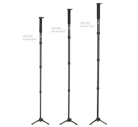 JUSINO Carbon Monopod mit abnehmbarem Fuß/Tischstativ Schnellspann-Clips bis 164cm/10kg VM-284EC