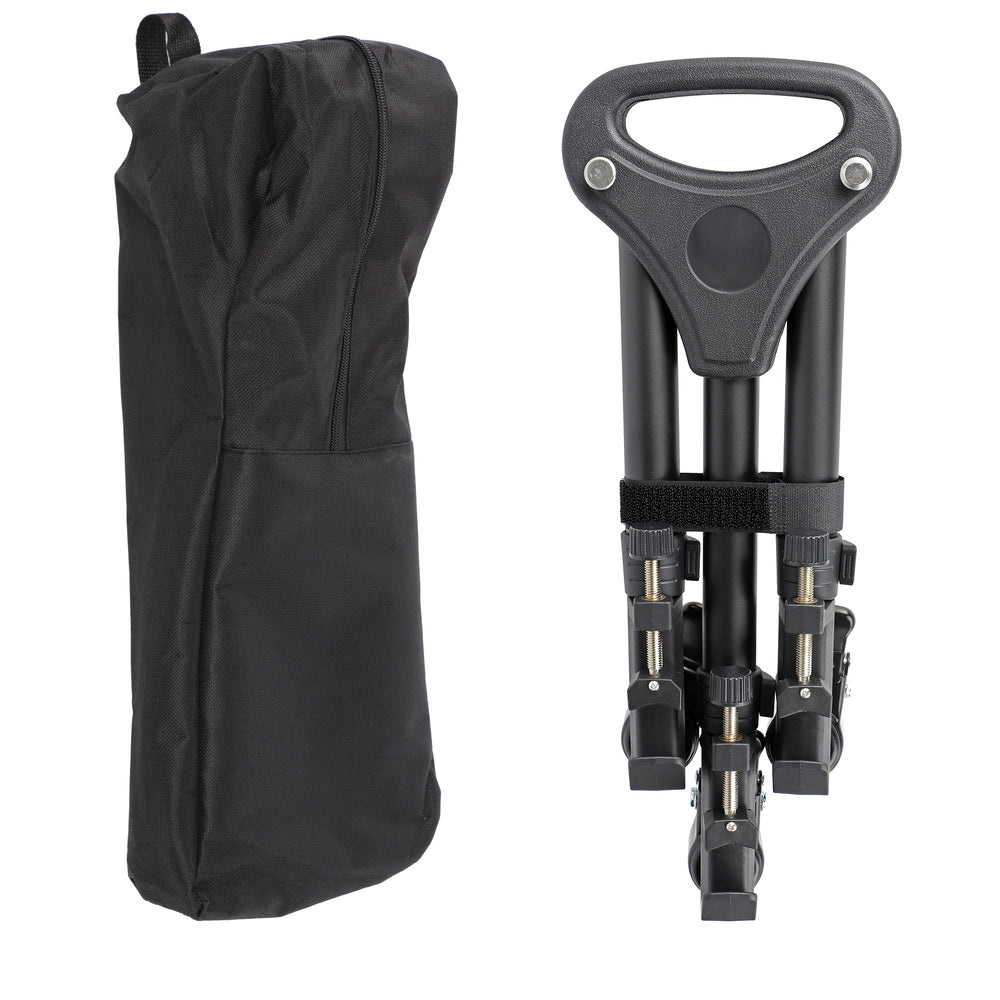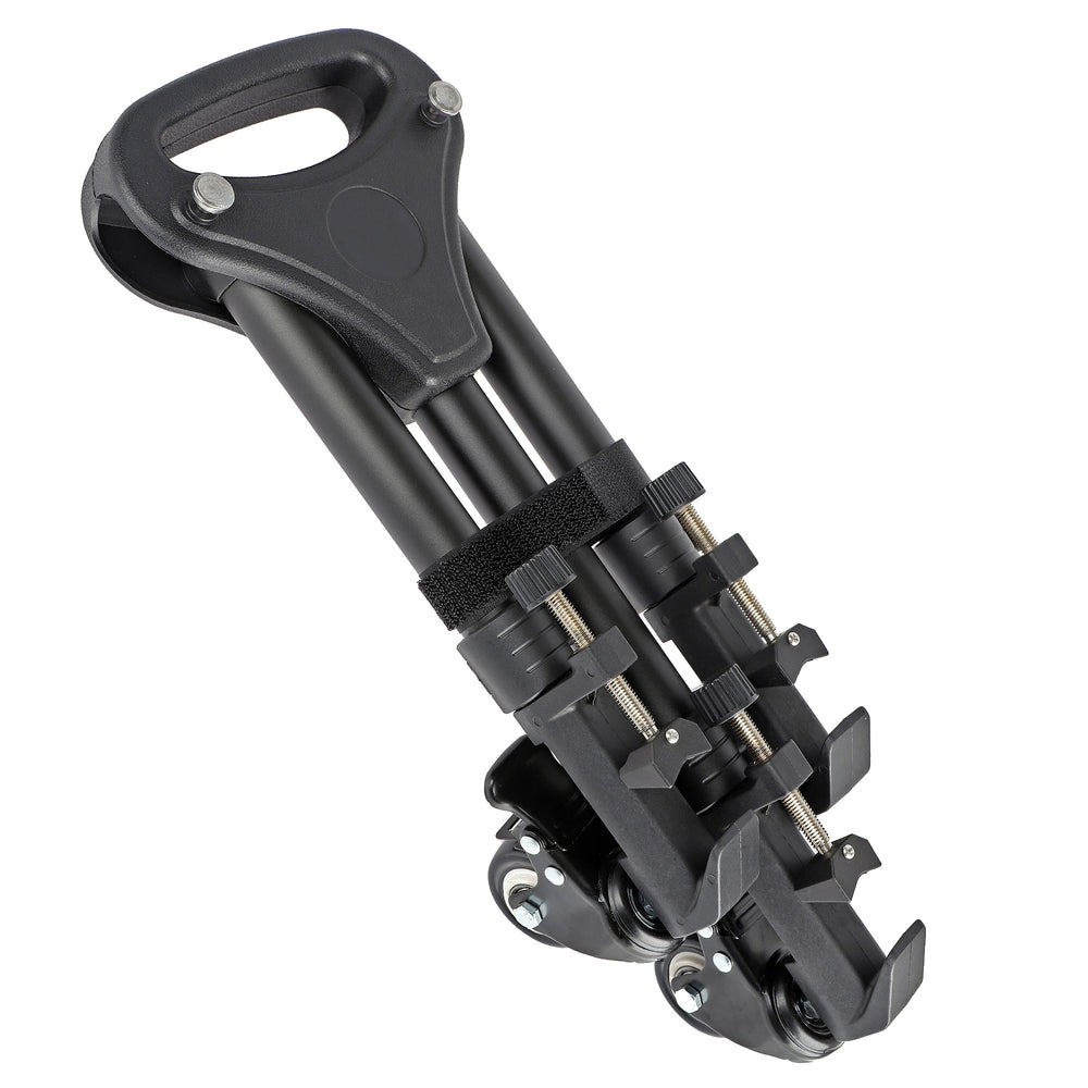 Dieser Dolly ist sehr stabil verarbeitet und wiegt dennoch lediglich 1,7kg. Für den Transport oder die Aufbewahrung lässt er sich blitzschnell auf ca. 45cm Länge zusammenklappen und platzsparend in der zugehörigen Tasche verstauen.