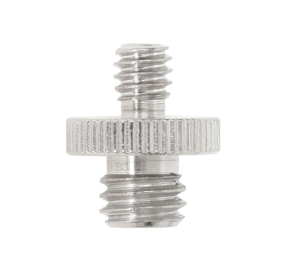 Dieser stabile Stahl-Adapter besitzt ein 1/4 Zoll Außengewinde und ein 3/8 Zoll Außengewinde. So lässt sich beispielsweise ein Kugelneiger an einer Zubehörplatte befestigen. Das verbindende Rad in der Mitte ist gerändelt, damit Ihre Finger beim Montieren nicht abrutschen.