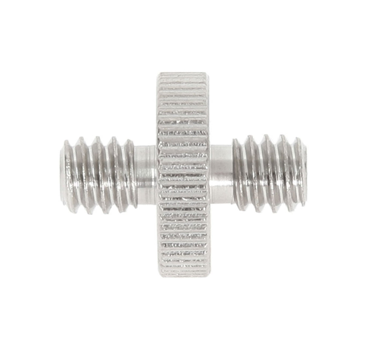 Dieser stabile Stahl-Adapter besitzt zwei 1/4 Zoll Außengewinde und verbindet beispielsweise einen kleinen Kugelneiger mit einer Zubehörplatte. Das verbindende Rad in der Mitte ist gerändelt, damit Ihre Finger beim Montieren nicht abrutschen.