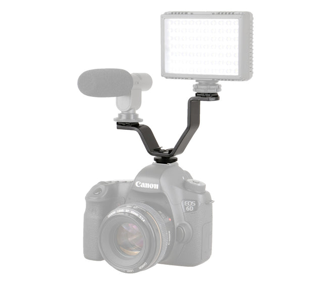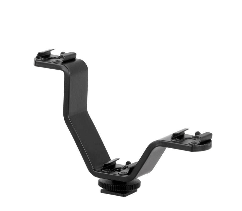 Mit dieser kleinen Blitzschiene können Sie Zubehör in unterschiedlichen Höhen an Ihrer Kamera bzw. Ihrem Stativ montieren und so Ihre Aufnahmen optimieren. Bis zu drei Zubehörteile gleichzeitig finden auf der Schiene Platz. Jegliches Equipment, das über einen Standard-Blitzschuh verfügt, lässt sich an den drei Anschlüssen anbringen, wie z. B. Blitzgeräte, Videoleuchten oder Mikrofone.Beachten Sie bitte, dass die Blitzschiene keine elektronischen Signale überträgt. Für aufgesteckte Blitzgeräte benötigen Sie daher ein extra Kabel. Technische Details:
