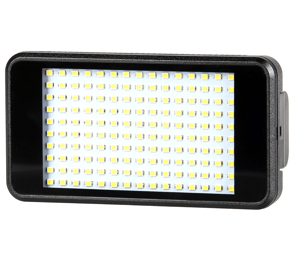 Diese superdünne Videoleuchte im Smartphone-Format ist mit 150 LEDs ausgestattet und verleiht Ihren Foto- und Filmaufnahmen natürliches stabiles Licht. Die Lichtintensität lässt sich dimmen und je nach Bedarf können Sie den weißen Filter für weiches Licht oder den orangenen Filter für eine warme Lichtstimmung aufsetzen.