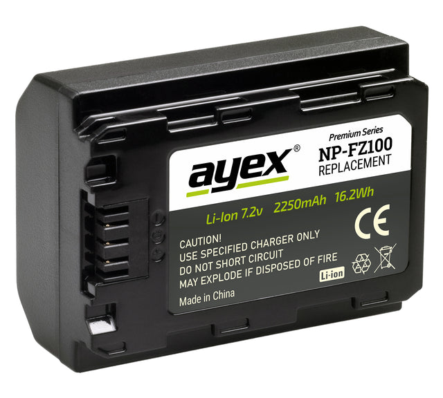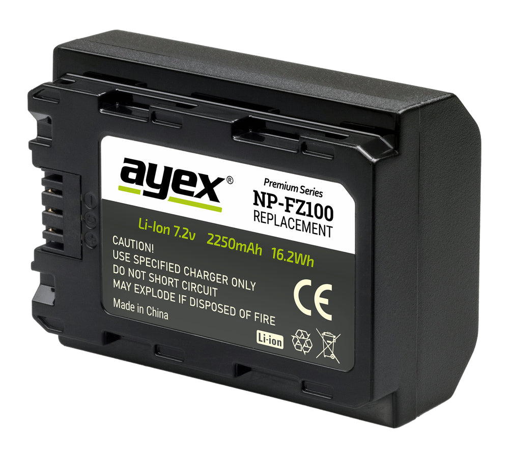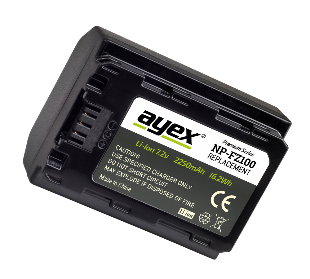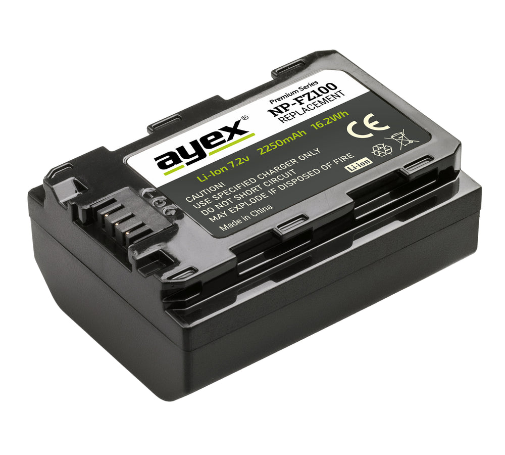 ayex NP-FZ100 Akku für z.B. Sony A9 A9R A9S A7R III, A7 III kompatibel mit Sony-Ladegeräten
