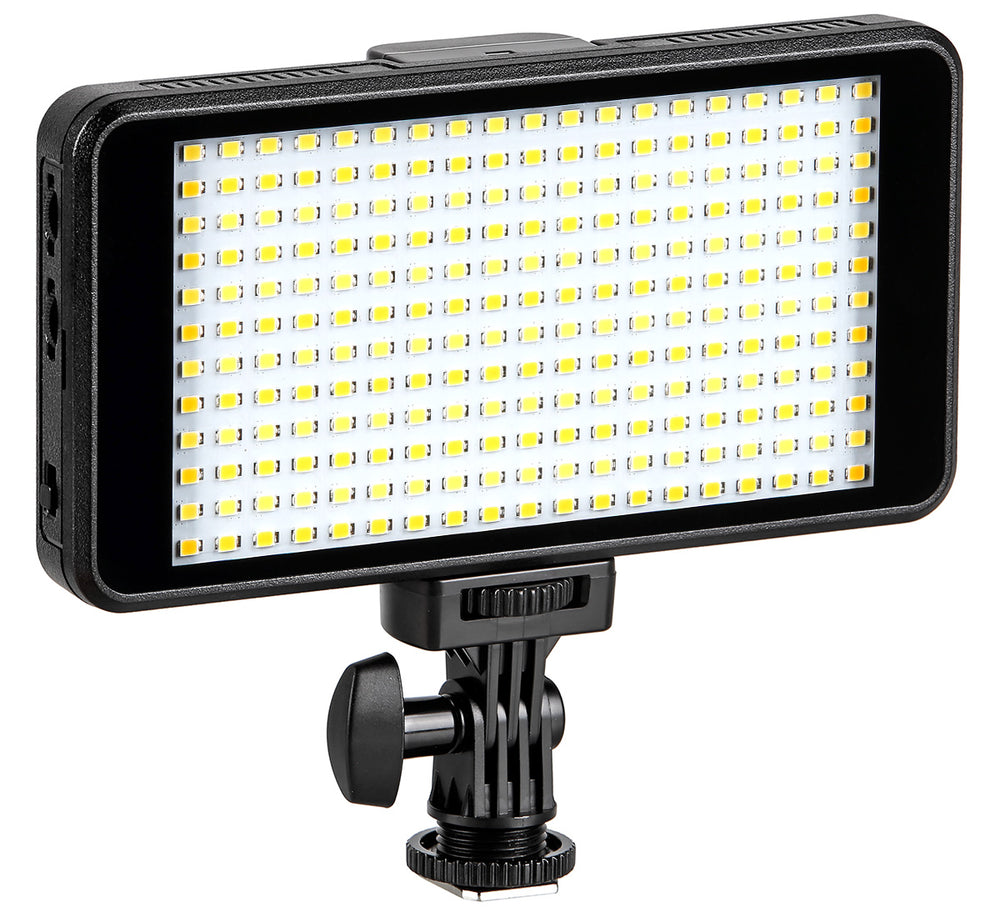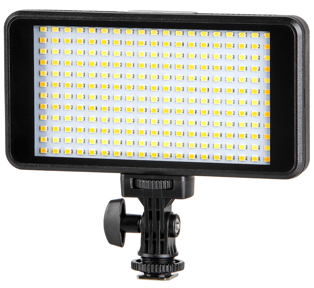 Diese extraflache starke Videoleuchte verfügt über 228 LEDs, die Ihren Foto- und Filmaufnahmen natürliches gleichmäßiges Licht geben. Die abwechselnd weißen und gelben LED-Reihen lassen sich mit zwei Reglern stufenlos und farblich unabhängig voneinander dimmen. Sie können also bestimmen wie intensiv das weiße und das gelbe Licht leuchten soll und damit die Lichtstimmung ganz individuell auf die Aufnahmesituation einstellen.