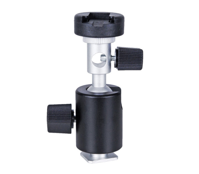 Über ein Kugelgelenk lässt sich die gewünschte Neigung (bis 90°) einstellen und mit einer Schraube arretieren. Besonders bei Blitzgeräten ohne verstellbaren Winkel ist diese Neigbarkeit von großem Vorteil.