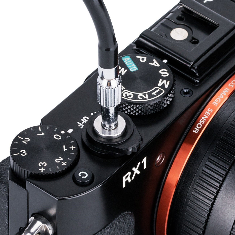 Dieser Draht-Kabelauslöser ist für alle Kameras mit einem gewindebezogenen Auslöserknopf geeignet.
