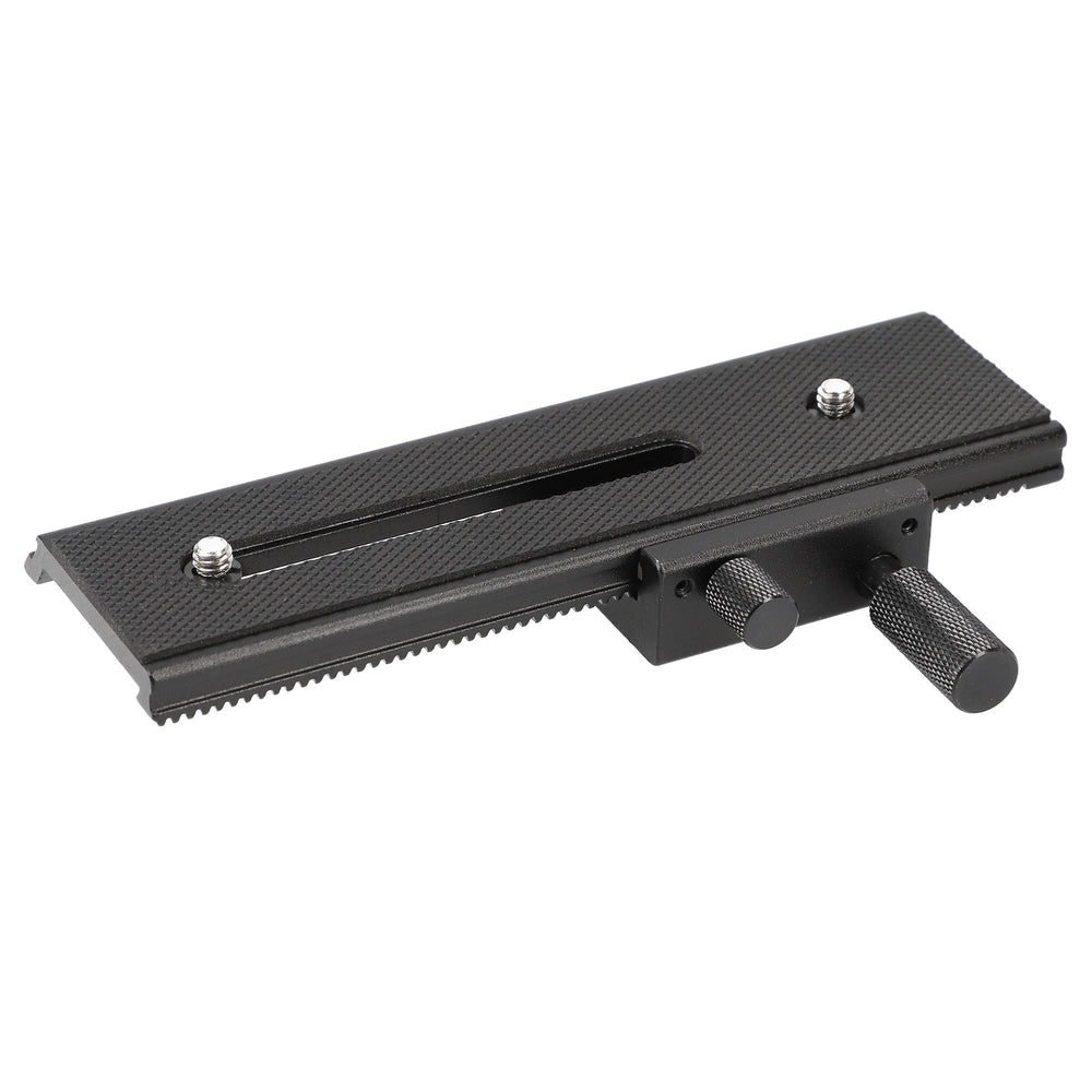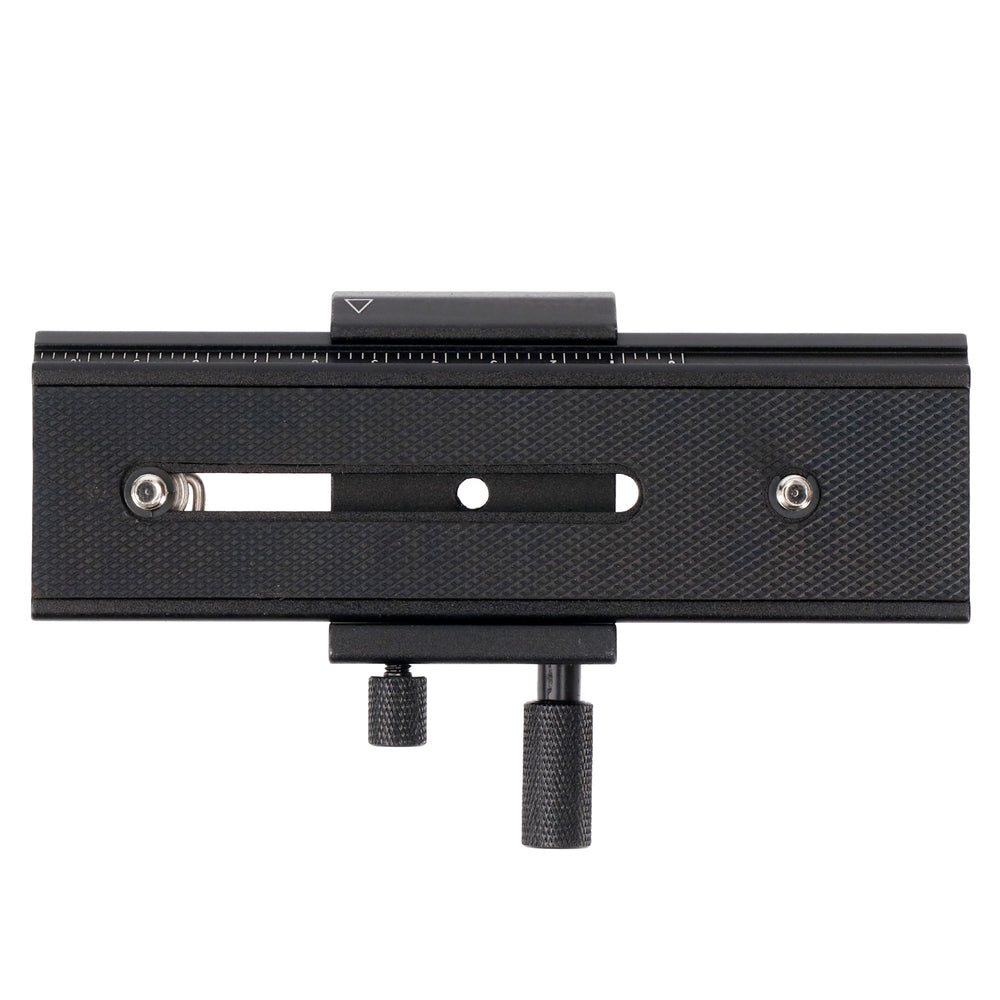 Der Einstellschlitten lässt sich auf jedem beliebigen Stativ oder Kugelkopf mit 1/4-Schraube befestigen. Er ist trotz des günstigen Preises sehr passgenau und stabil konstruiert, so dass sich die Kamera mit dem Verstellrad flüssig und ruckelfrei entlang der Schiene bewegen lässt. Mit einer Klemmschraube kann man den Schlitten bremsen; entweder komplett, um den Schlitten zu fixieren oder nur leicht, um sicherzustellen, dass der Schlitten durch das Gewicht der Kamera nicht versehentlich durchrutscht.
