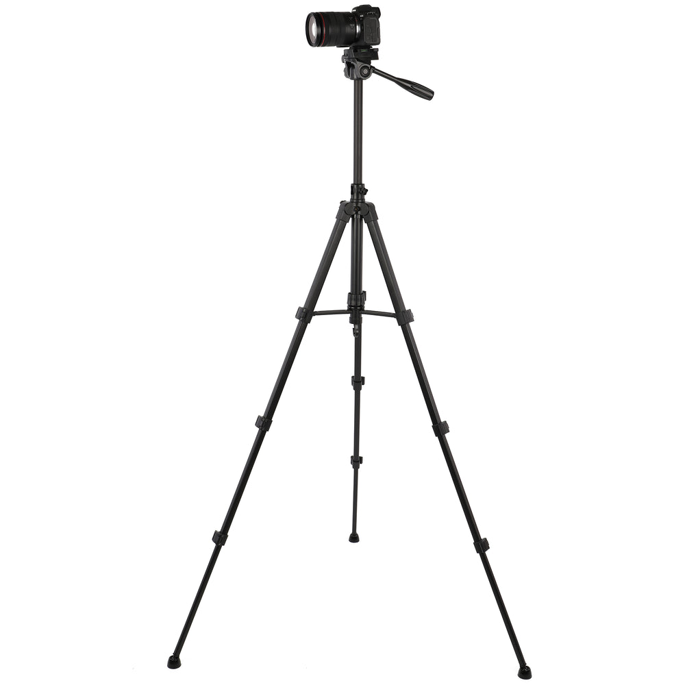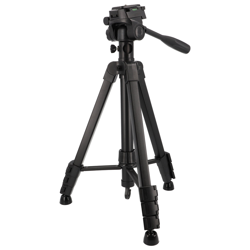Die vierfach ausziehbaren Beine mit Schnellverschlüssen ermöglichen eine unkomplizierte Höhenanpassung, während der integrierte Schwenkgriff eine ruhige Kameraführung bei Video- oder Panoramaaufnahmen unterstützt. Der Haken an der Mittelsäule sorgt bei Bedarf für zusätzliche Stabilität durch Zusatzgewicht.
