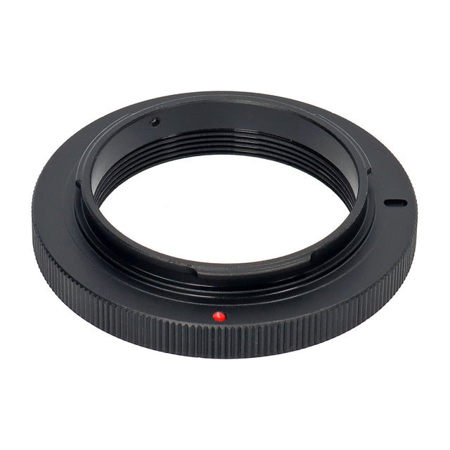 Den Adapter zunächst an das Objektiv schrauben. Danach die rote Markierung an dem roten Punkt am Kamerabajonett ausrichten und das Objektiv wie gewohnt an der Kamera befestigen.