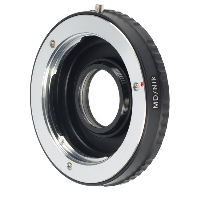 Das Minolta SR-System besitzt ein geringeres Auflagemaß als das Nikon-System. Normalerweise geht deshalb bei der Adaptierung eines SR-Objektivs an ein Nikon-Gehäuse der Unendlichkeitsfokus verloren. Der Objektivadapter verfügt jedoch über eine Ausgleichslinse, die dies kompensiert. Der Unendlichkeitsfokus bleibt erhalten.