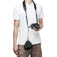 Mit stilvollen Kantenstichen erhält die Tasche ein ansprechendes, handgefertigtes Aussehen. Außerdem kann die Tasche mit oder ohne Nackenriemen verwendet werden. Bei Entfernung lässt sie sich direkt über das integrierte Band am Nackenriemen oder Kameraaugen befestigen.