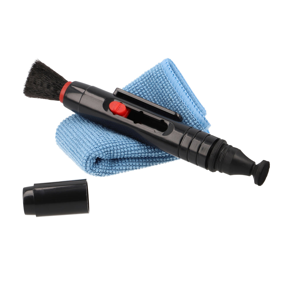 Der kräftige Blasebalg entfernt losen Staub kontaktlos – perfekt als erster Schritt, auch zur vorsichtigen Sensorpflege ohne Berührung. Der ausziehbare, weiche Reinigungspinsel löst verbliebene Partikel an schwer zugänglichen Stellen. Mit der Carbon-Reinigungsspitze des Lens-Pens beseitigst du Fingerabdrücke und Fettspuren von der Frontlinse sichtbar rückstands- und schlierenfrei. Das Mikrofasertuch rundet die Pflege ab und sorgt für eine makellos saubere Oberfläche.