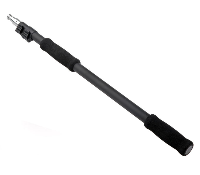 Zwei Sektionen ermöglichen den Auszug von 63cm bis 163cm Länge. Mittels stabiler Schnellverschlüsse wird die eingestellte Länge arretiert. Zwei versetzt angebrachte ergonomisch geformte Handgriffe aus gepolstertem Schaumstoff sorgen für eine bequeme Handhabung.