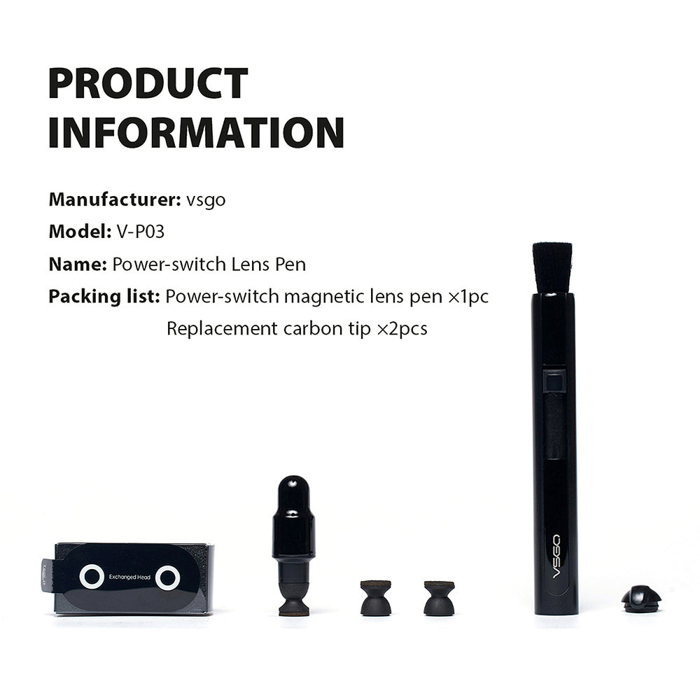 Der VSGO Lens Cleaning Pen ist das ideale Zubehör zur täglichen Pflege deiner Kameraausrüstung. Der Reinigungskopf mit spezieller Kohlenstoffbeschichtung entfernt sanft aber gründlich Fingerabdrücke, Fett und andere Rückstände. Der integrierte Pinsel hilft dabei, Staub vorab zu entfernen.
